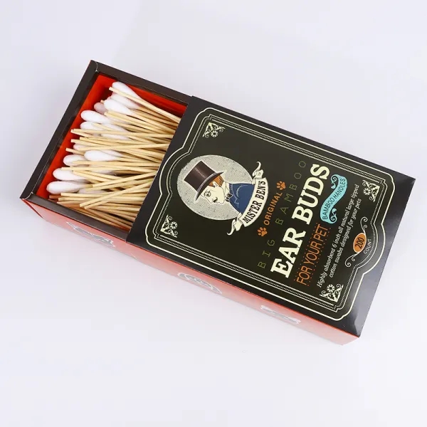 6 inch Bamboo Stick Pet Use Cotton Swabs 200 Count in Custom Paper Drawer Box