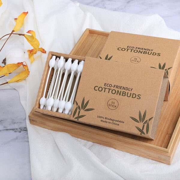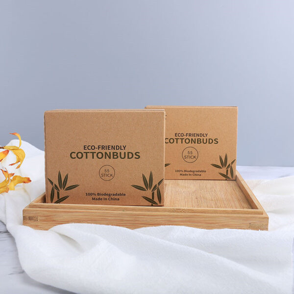 Biodegradable Safety Tip Paper Stick Cotton Swabs 55 Count in Paper Drawer Box