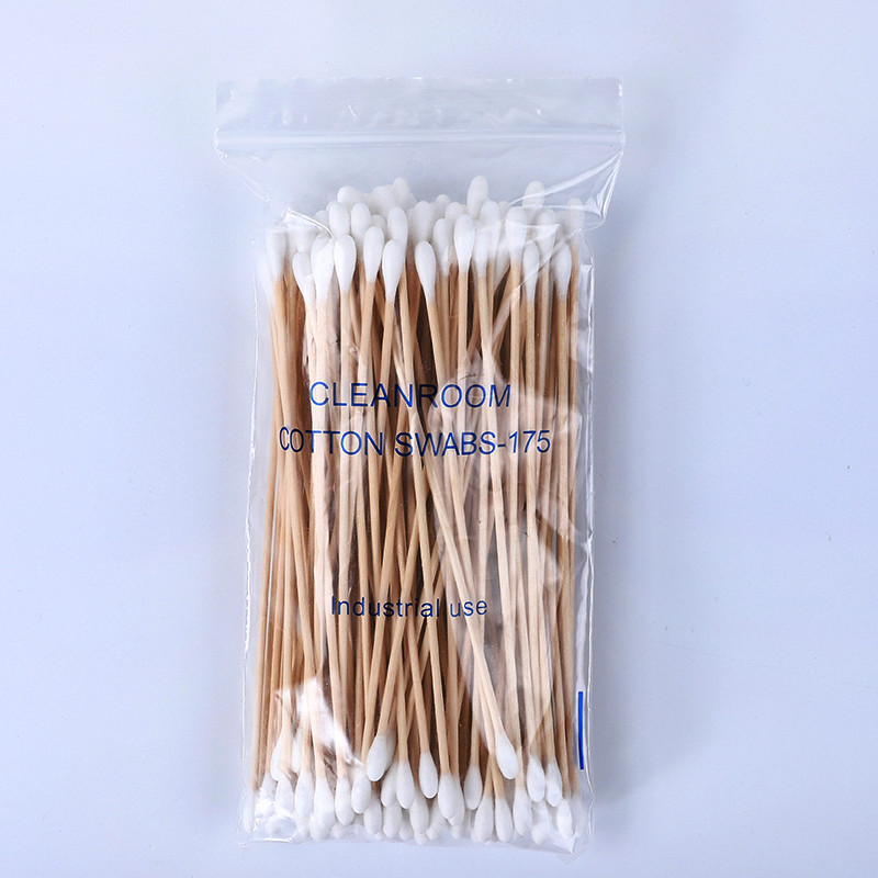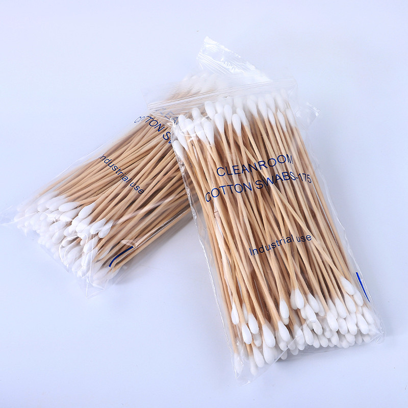 Cleanroom Industrial Use 6 inch Double Round Tip Cotton Tipped Applicator 100 Count in Zip Bag