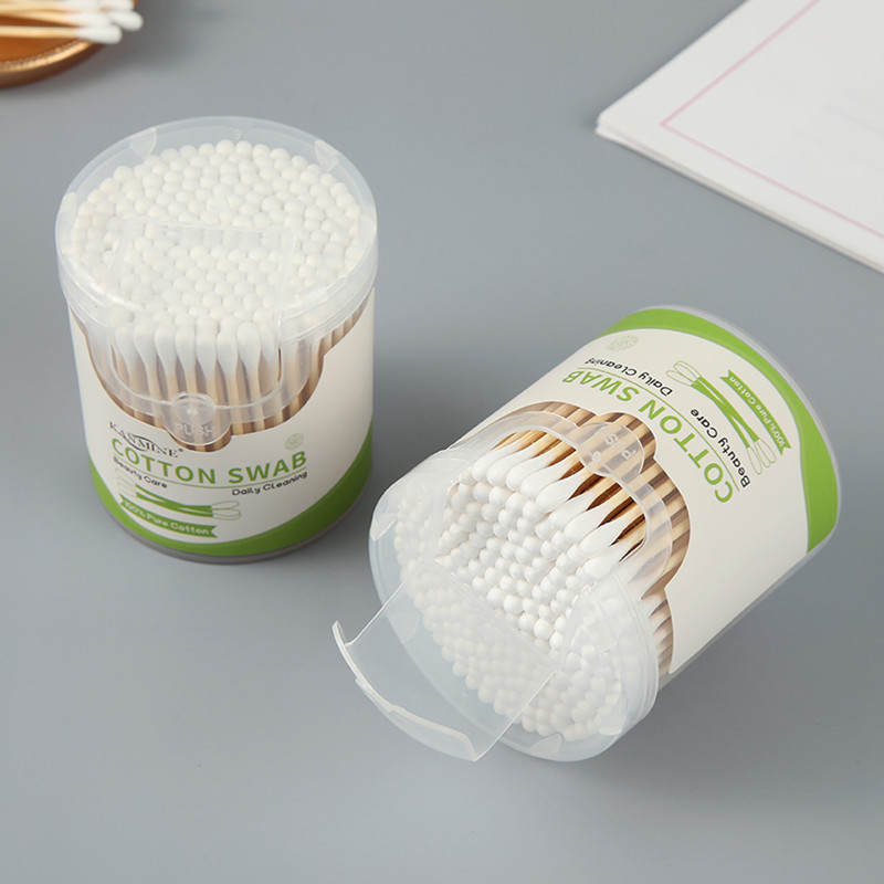 Custom Plastic Canister Bamboo Cotton Swabs (200 count)