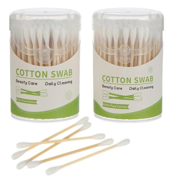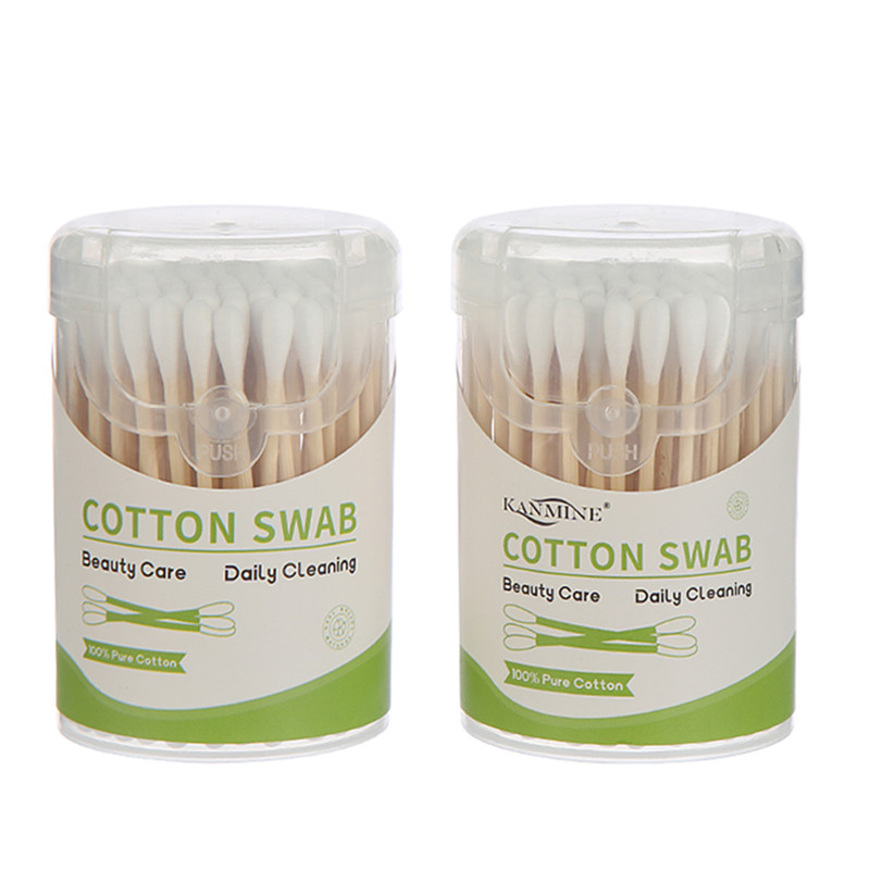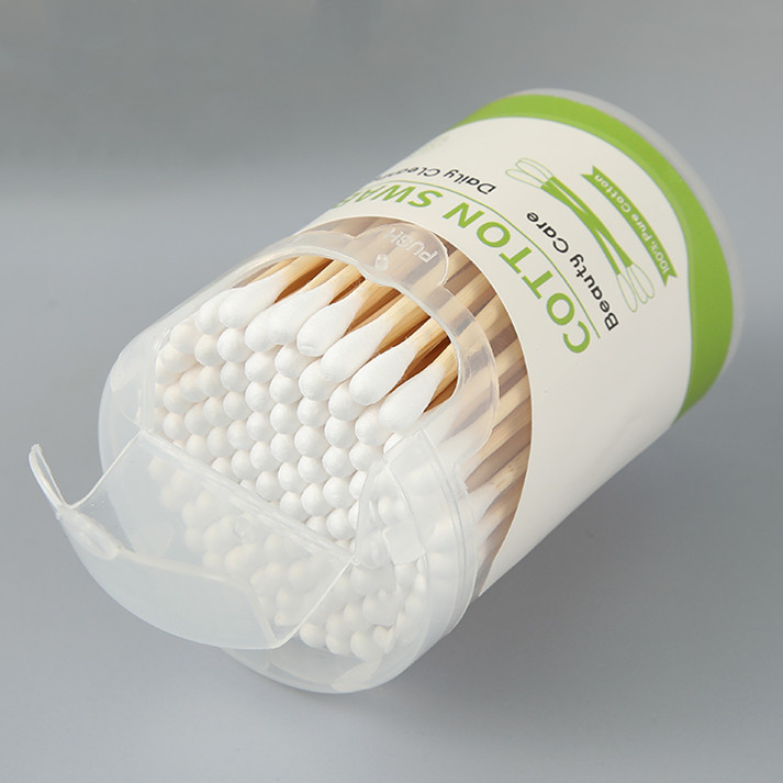 Custom Plastic Canister Packaging Bamboo Cotton Swabs (100 count)