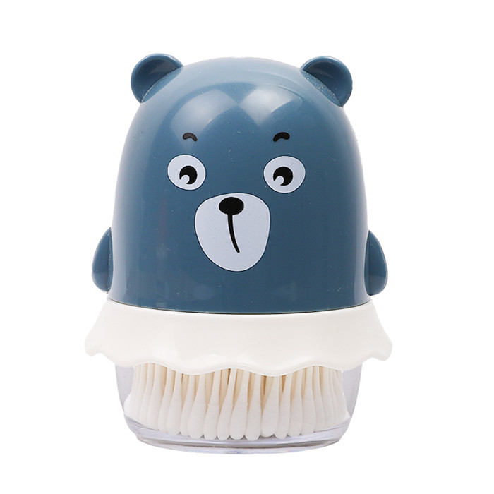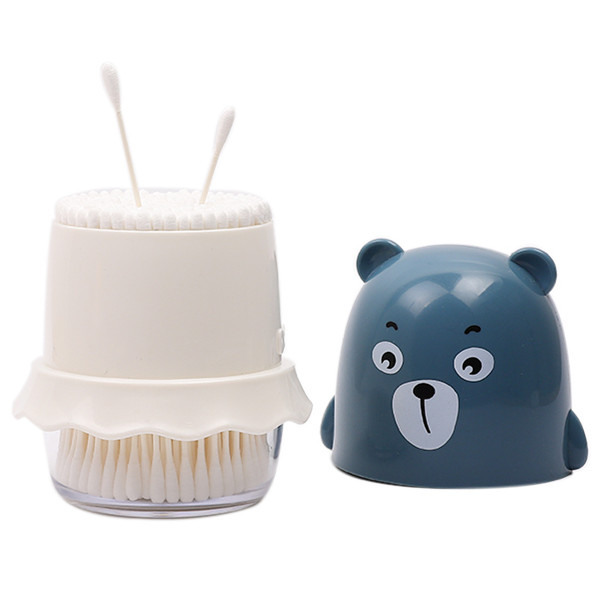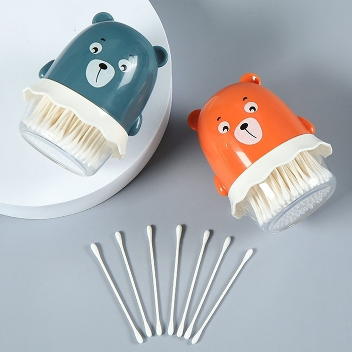 Cute Bear Plastic Box Packaging Paper Thin Stick Baby Cotton Swabs 200 Count