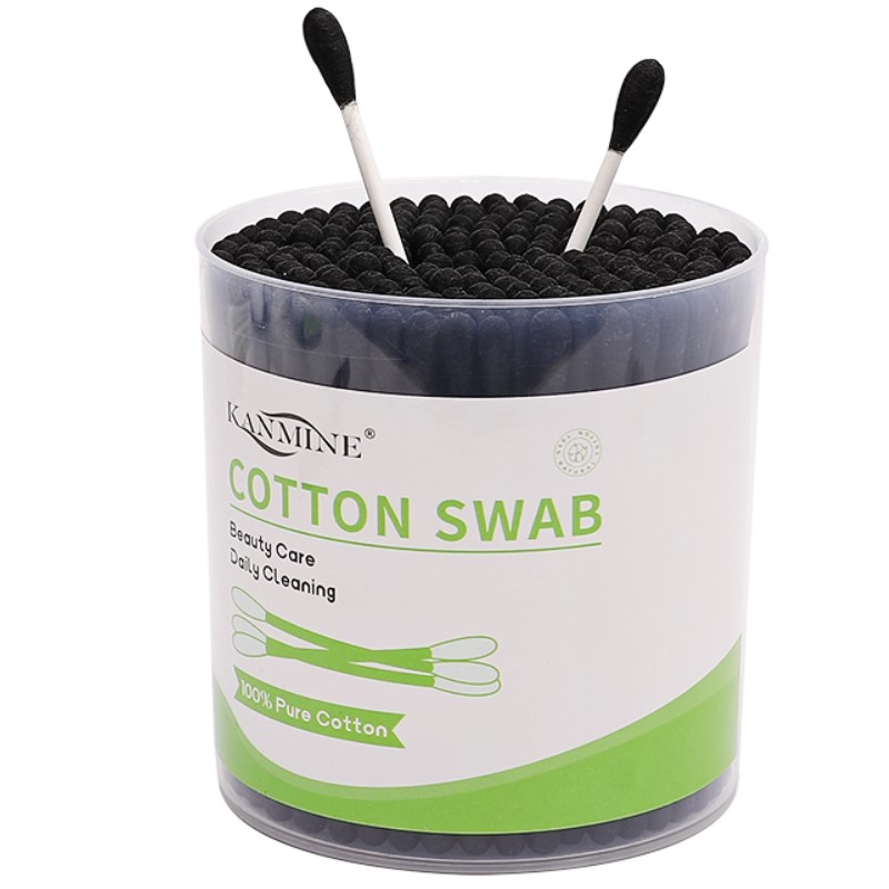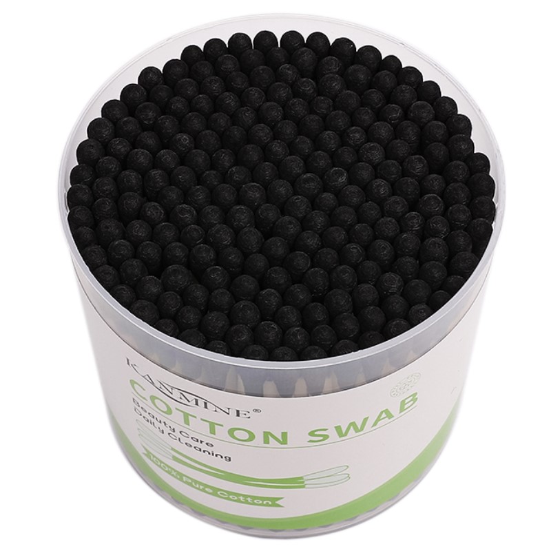 Paper Stick Black Tip Cotton Swabs 200 Count in Plastic Canister
