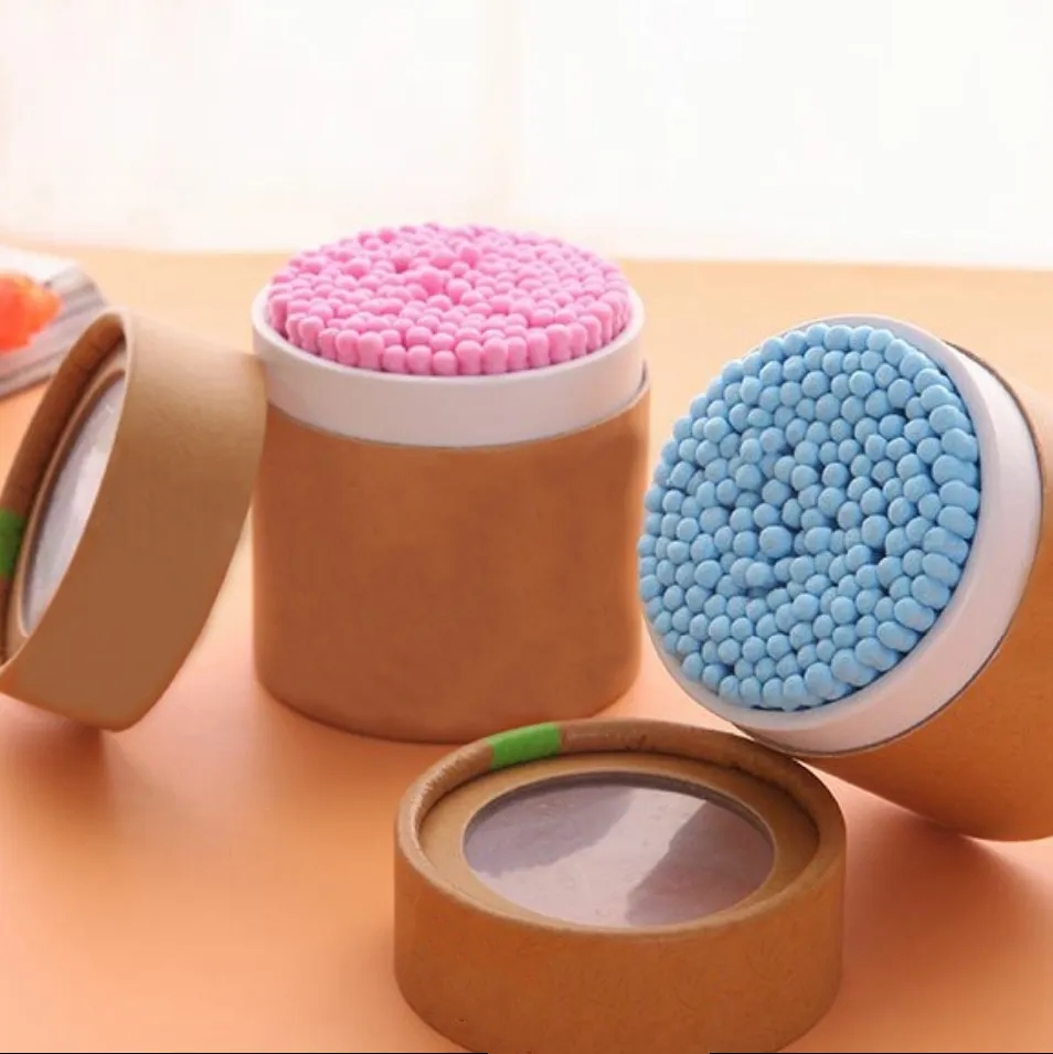 Paper Stick Colorful Spiral Tip Cotton Swabs 200 Count in Paper Canister