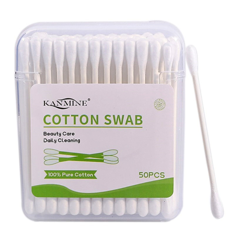 Paper Stick Cotton Swabs 50 Count in Custom Plastic Box