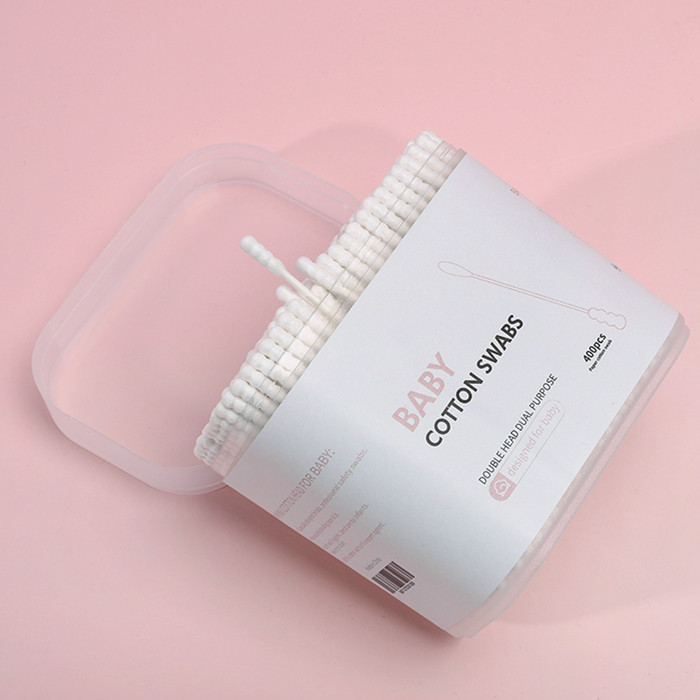 Paper Stick Spiral+Round Tip Baby Cotton Swabs 200/400 Count in Plastic Box