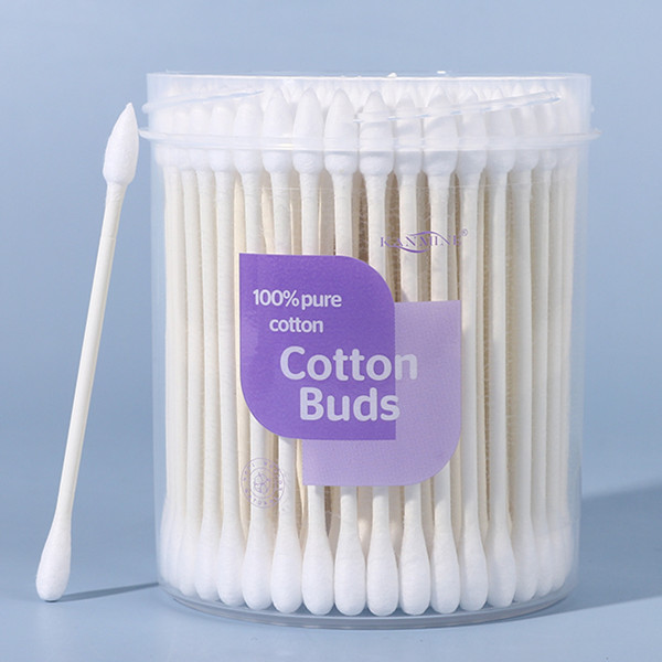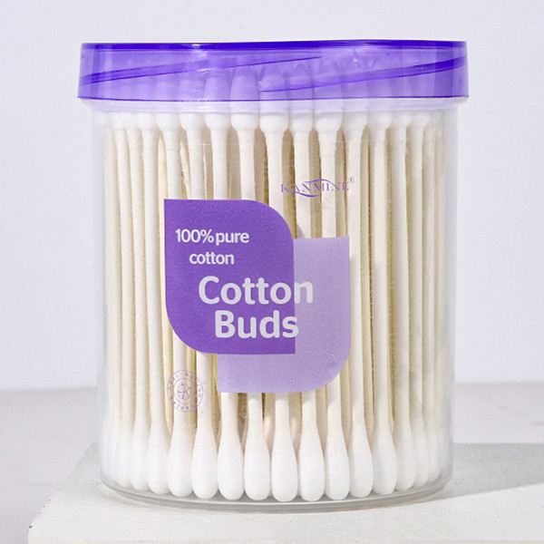 Pointed/Round Tip Paper Stick Cotton Swabs 150 Count in Purple Lid Plastic Canister