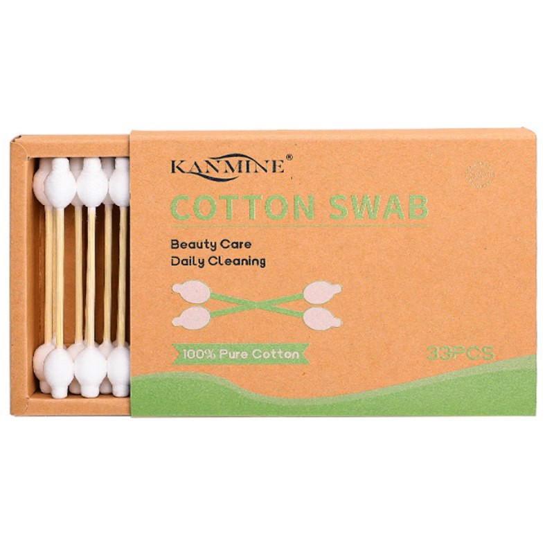 Safety Tip Bamboo Cotton Swabs 33 Count in Paper Drawer Box